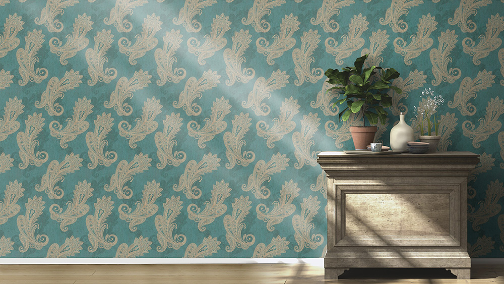 This wallpapers intricate paisley pattern and textured background add a touch of sophistication and charm to any room. .