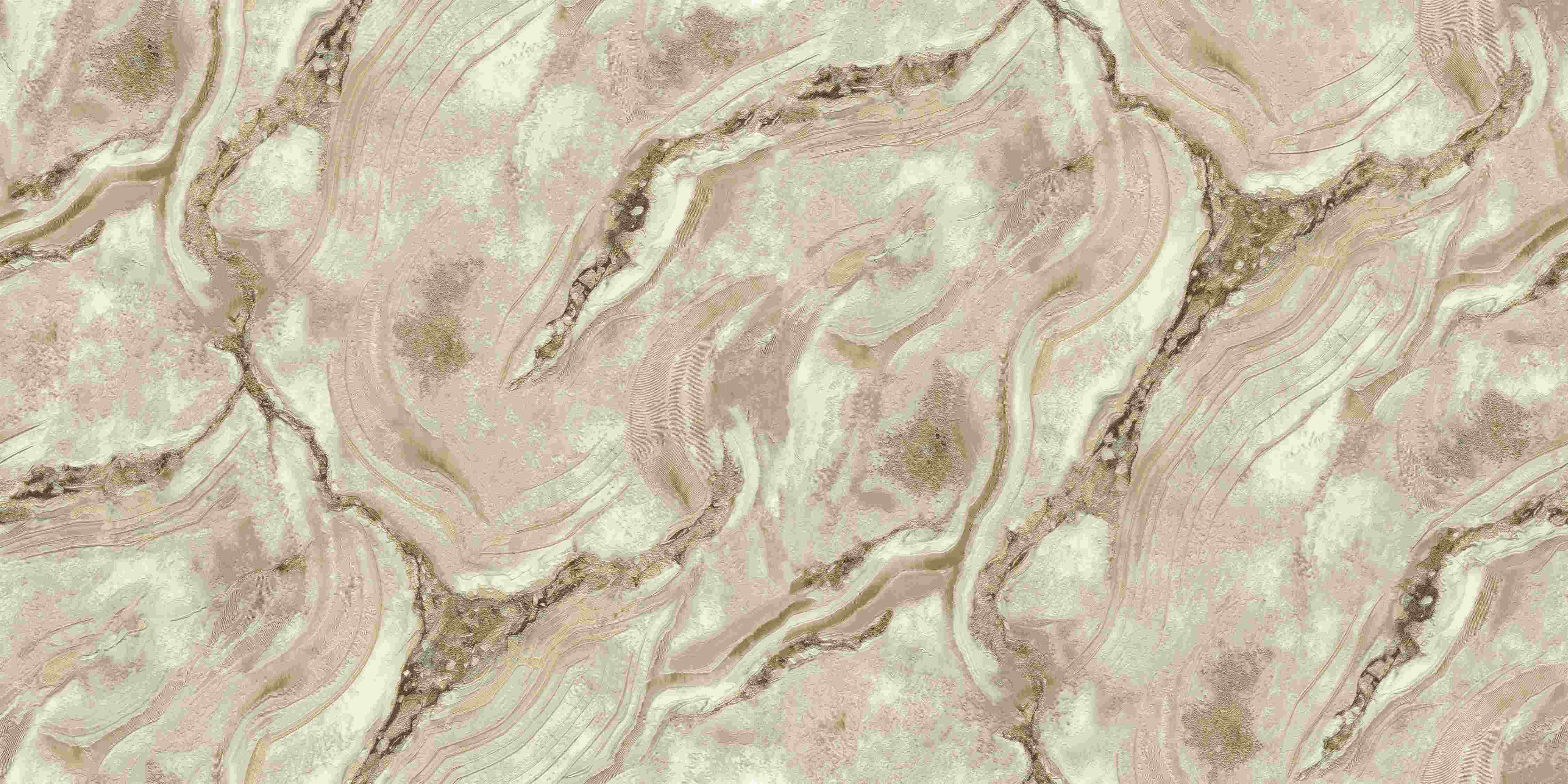 A wallpaper with a fluid, organic pattern resembling polished stone or agate. The colors are a mix of soft blush pink and a light grey, with dark brown and white veins..