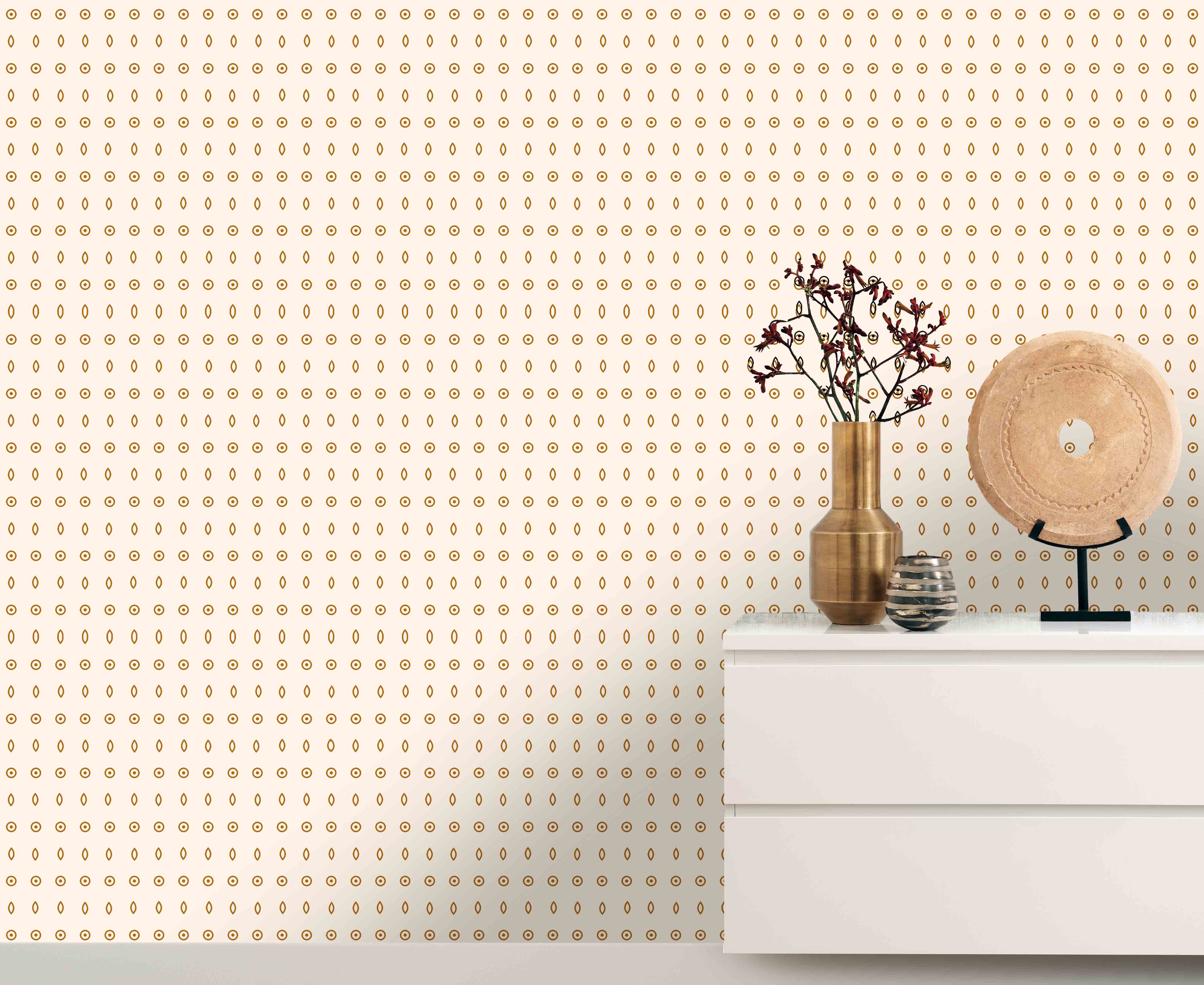 The 2 symbols on the wallpaper denote Sattva and Sarvam. Sattva is one of the three gunas in Hindu philosophy. The word means "light," "goodness" and "purity" in Sanskrit. While Sarvam encapsulates the idea that God not only created the universe, but is also present in all of it. The idea here was to create a design which symbolizes and create an energy for a positive & calm space..