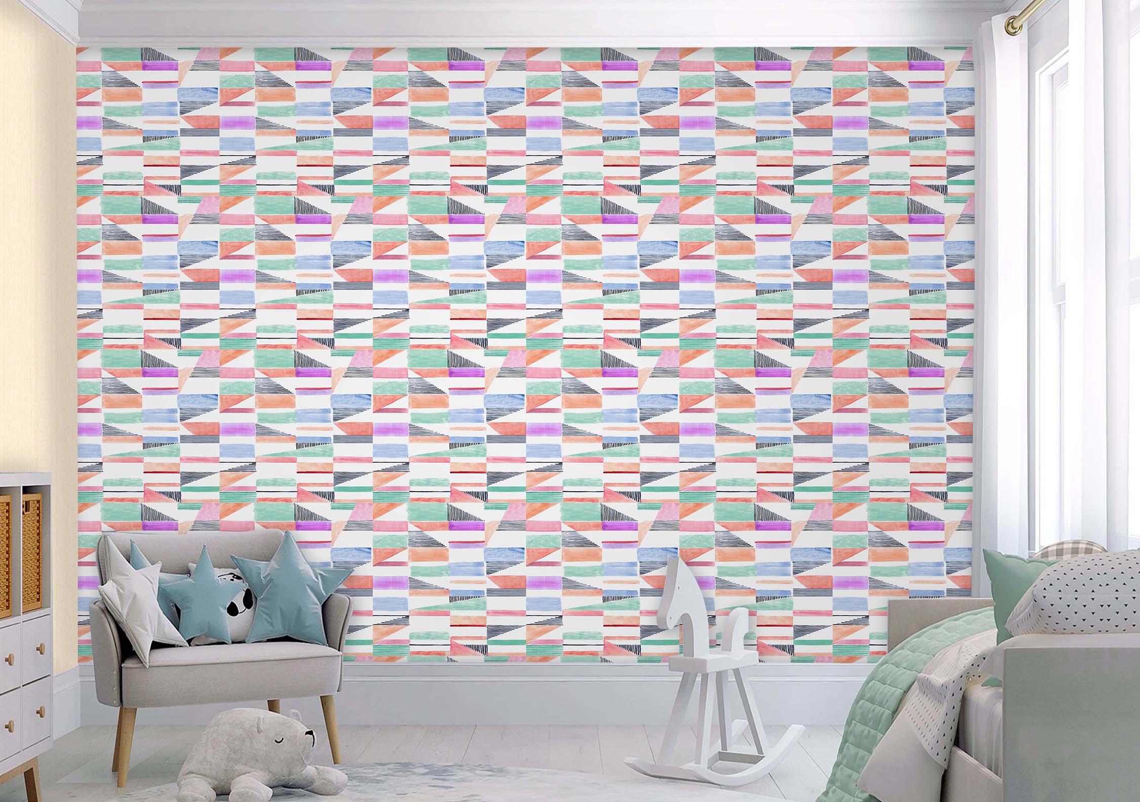 A geometric wallpaper featuring abstract shapes, perfect for a modern or contemporary space..