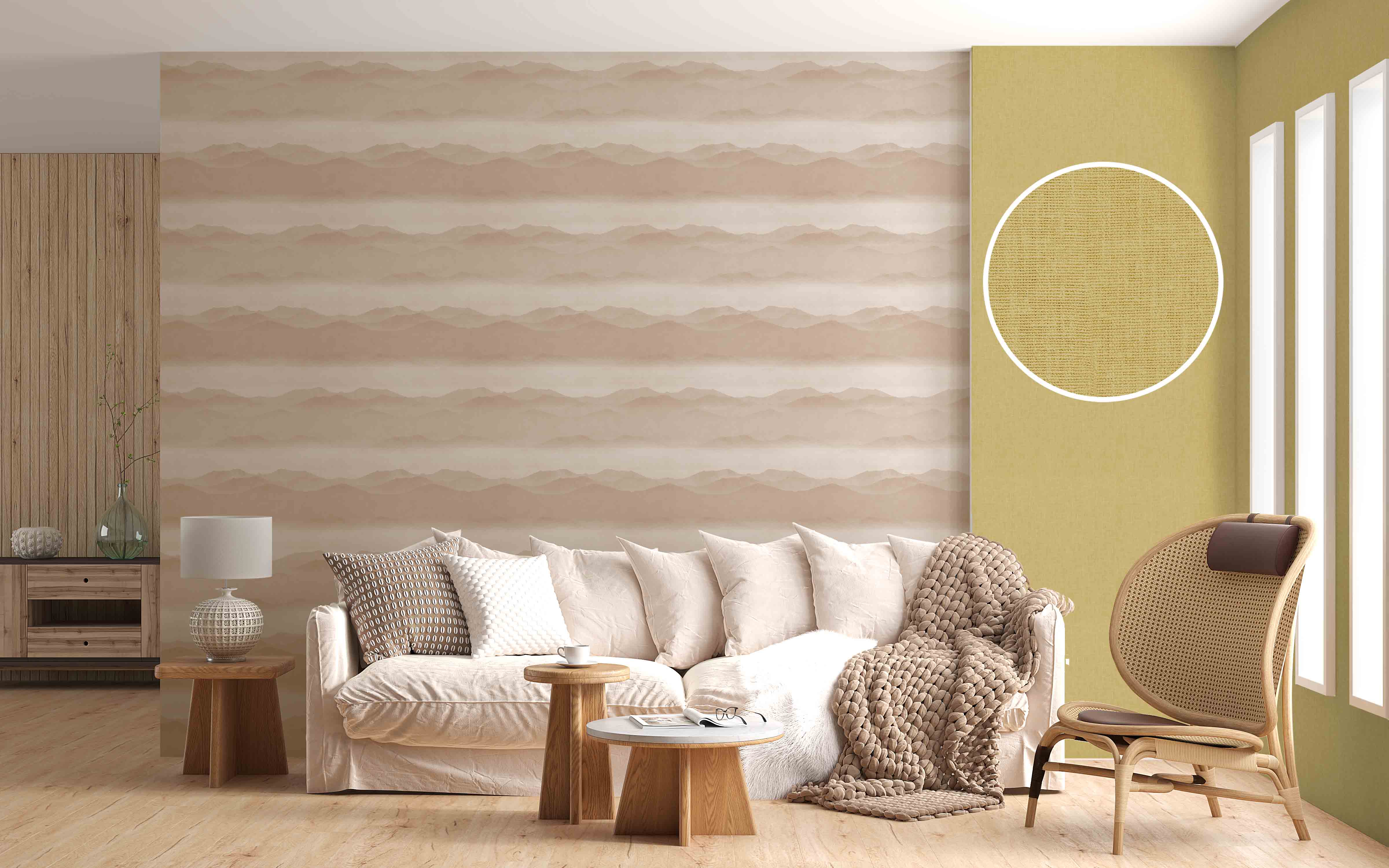 This wallpaper features a serene mountain landscape in a warm, neutral color palette. The mountains are depicted in shades of brown and beige, with soft, blurred outlines. The overall effect is one of tranquility and natural beauty. The muted tones create a calming atmosphere, while the subtle variations in color add depth and texture..