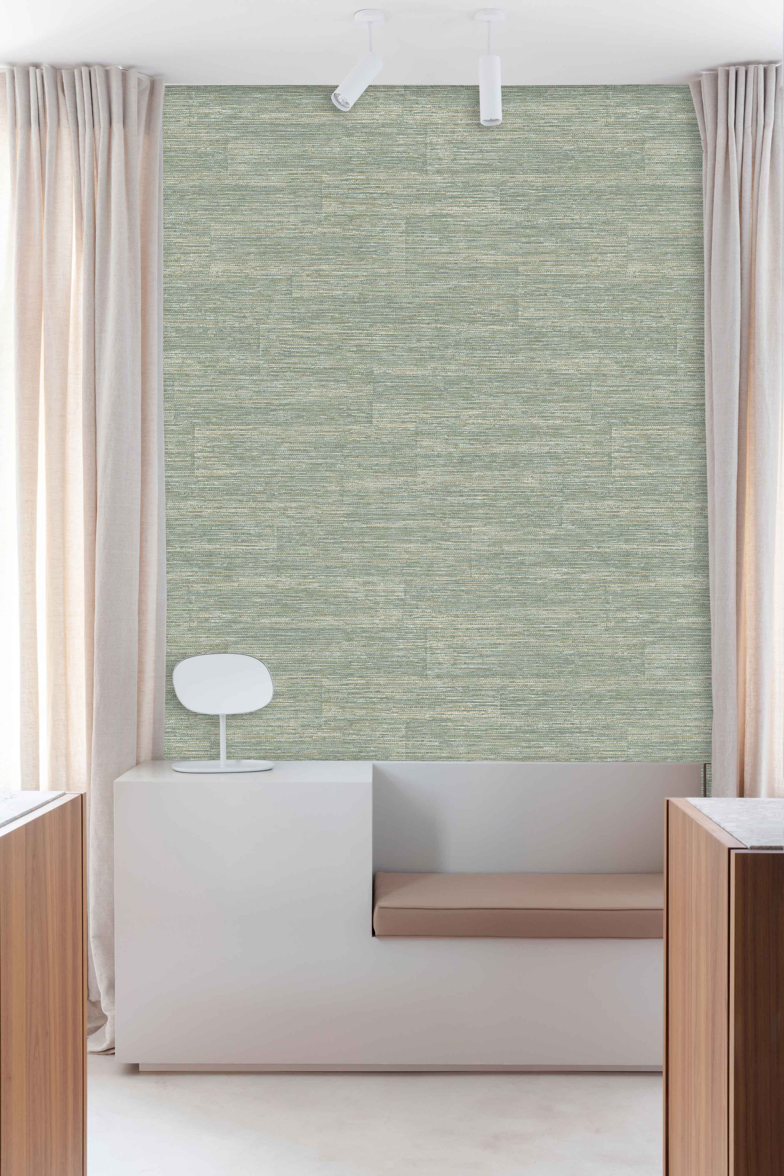 A refreshing wallpaper in a subtle aqua blue-green tone. The horizontal woven pattern is calming and elegant, making it an excellent choice for a serene bedroom or a spa-like bathroom..