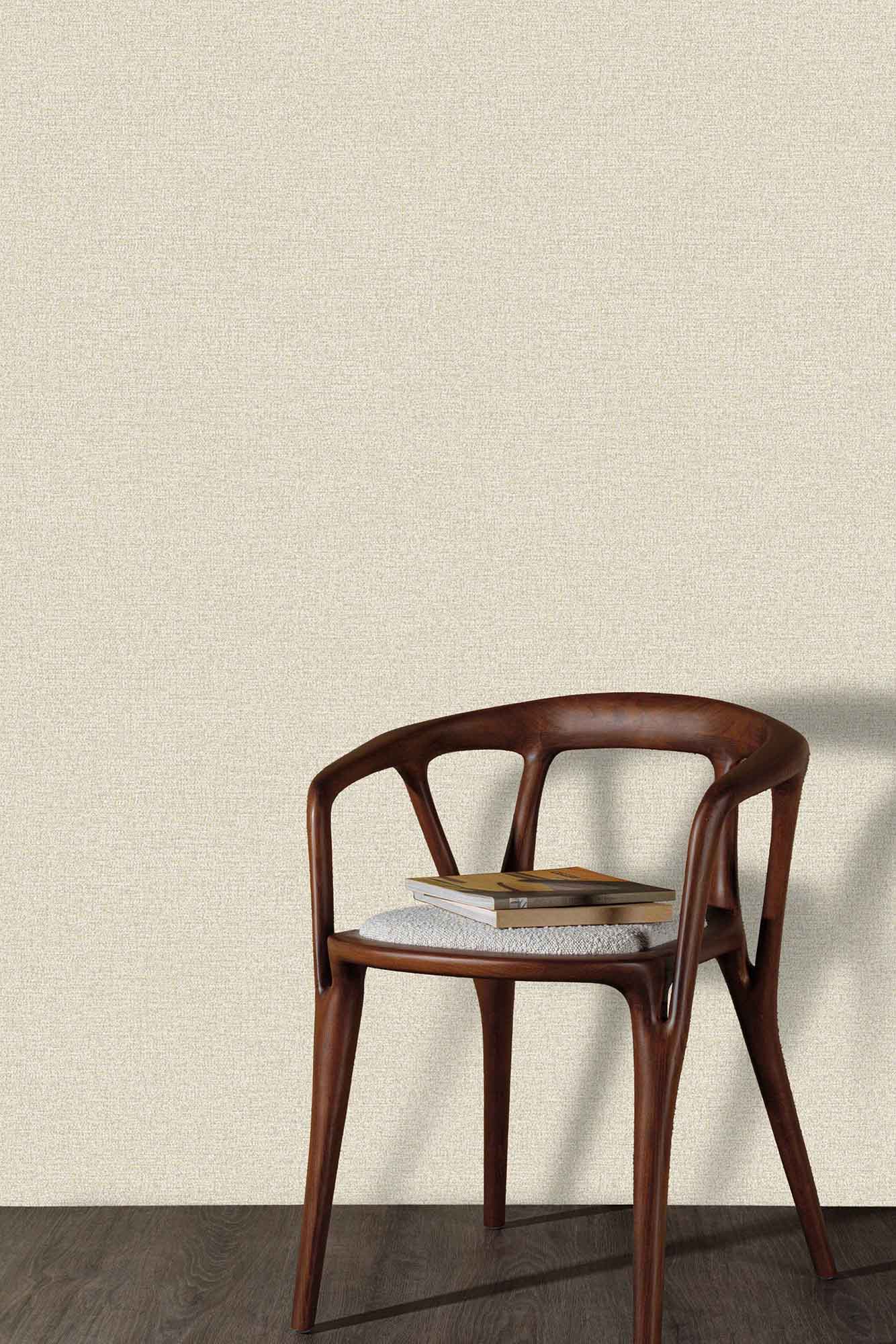 A soft and elegant wallpaper with an all-over, subtle texture that resembles a dotted or speckled fabric. The light cream color and uniform pattern create a clean, consistent look that is perfect for a minimalist design..