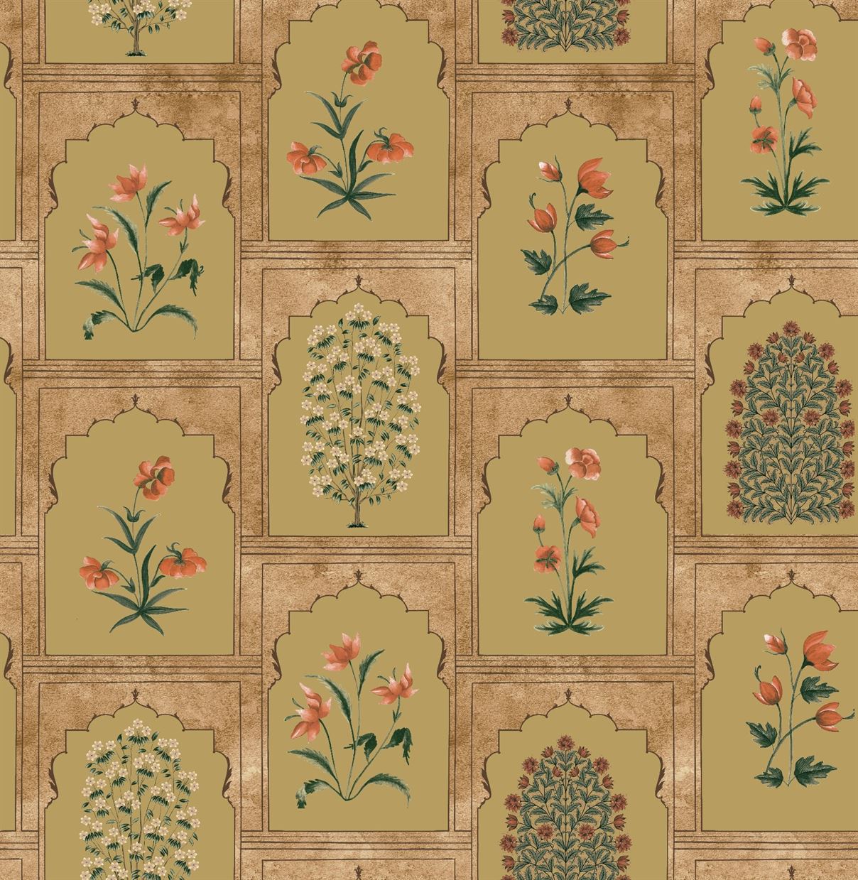 • The Heritage Jharokha wallpaper design draws inspiration from the exquisite jharokha architecture, a hallmark of traditional Indian design known for its intricate balconies and stunning lattice work. This wallpaper beautifully melds architectural elegance with artistic flair, celebrating the rich cultural heritage and craftsmanship that define this iconic style.