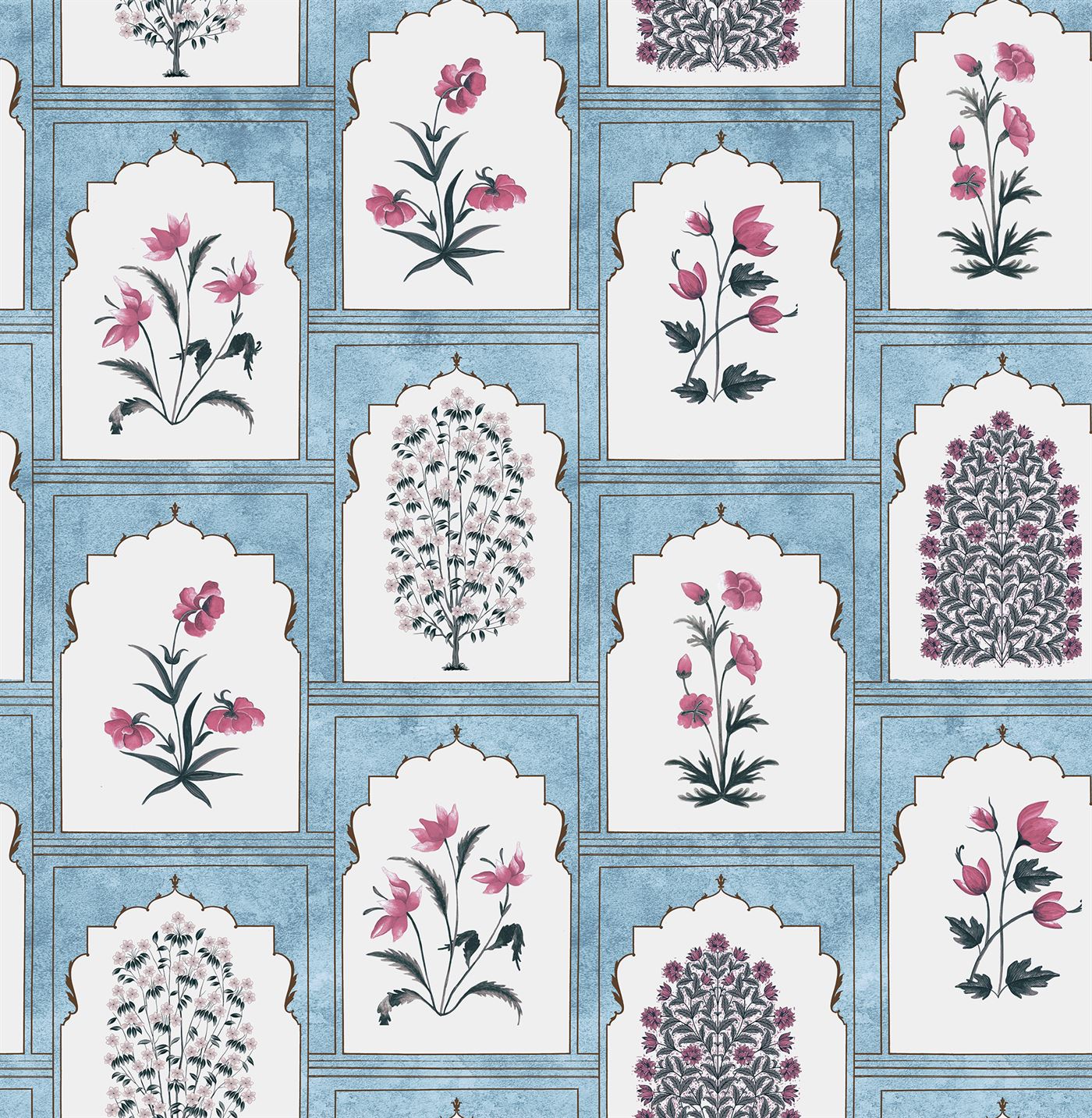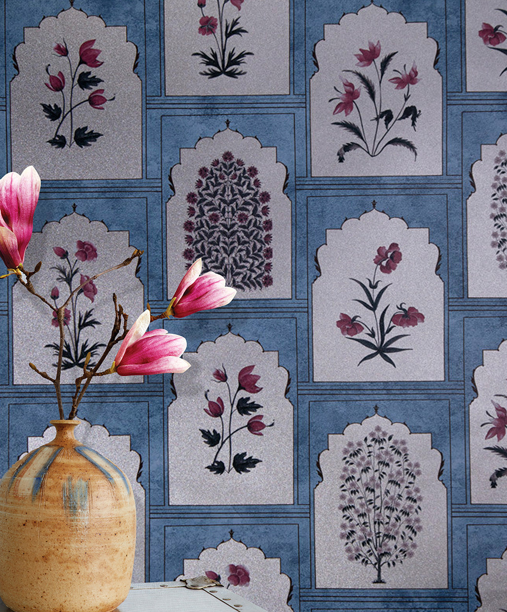 • The Heritage Jharokha wallpaper design draws inspiration from the exquisite jharokha architecture, a hallmark of traditional Indian design known for its intricate balconies and stunning lattice work. This wallpaper beautifully melds architectural elegance with artistic flair, celebrating the rich cultural heritage and craftsmanship that define this iconic style.